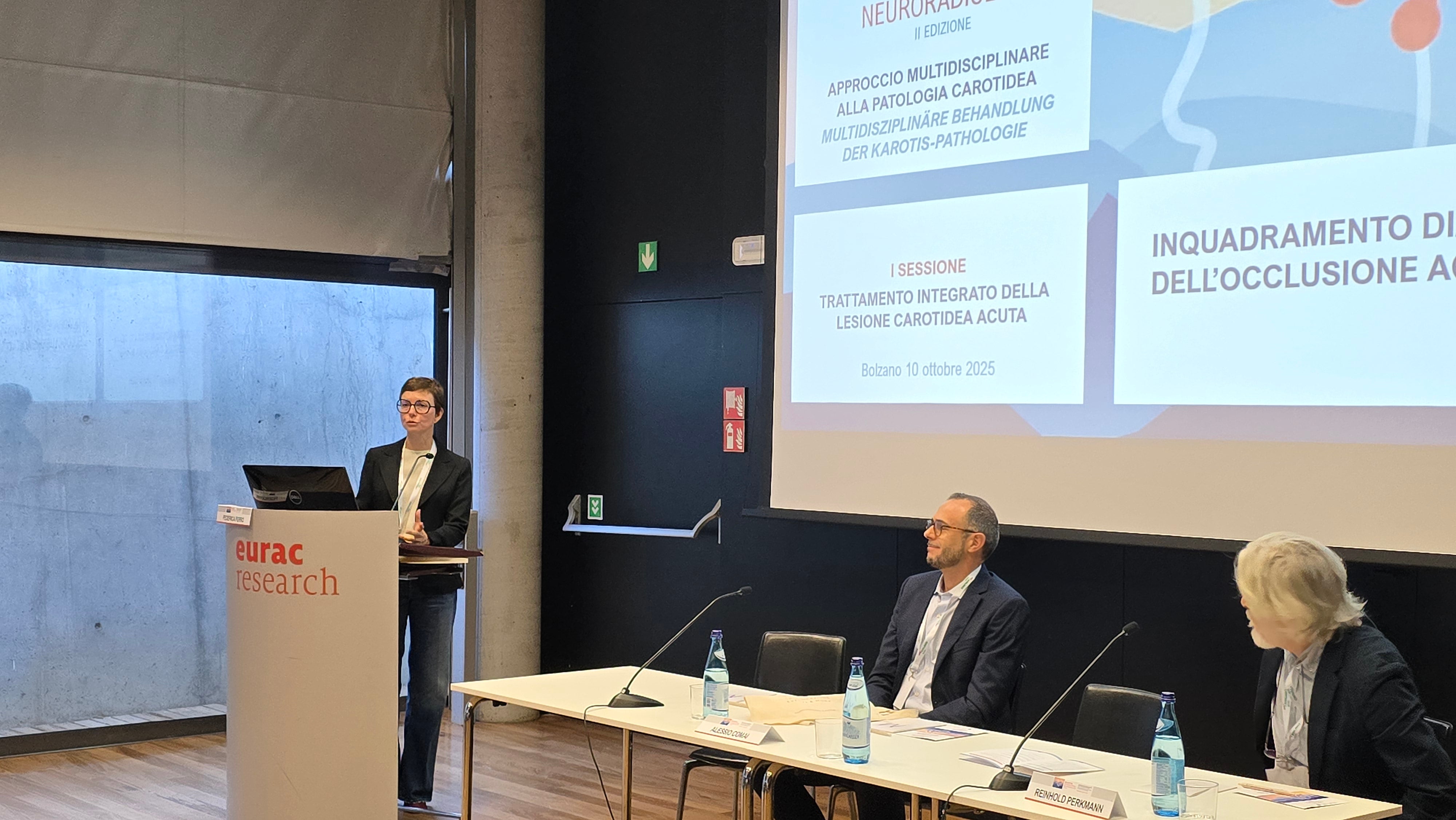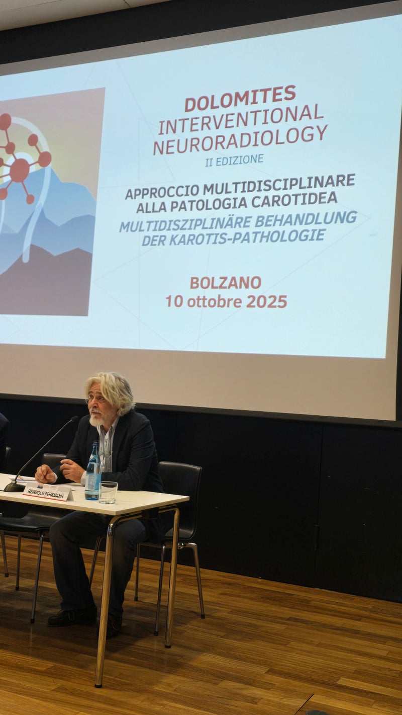 Am Tagungsort in der Europäischen Akademie EURAC in Bozen konzentrierte sich alles auf die Bedeutung eines multidisziplinären Ansatzes bei Karotis-Erkrankungen (Erkrankungen der Halsschlagader) und die zentrale Rolle der interventionellen Neuroradiologie. Letztere ist besonders wichtig bei der Behandlung von Verschlüssen dieser wichtigen Arterie, denn diese können zu einem Schlaganfall führen.