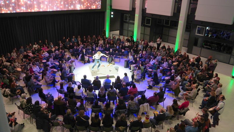 Im zweiten Teil des Abends nahmen die Teilnehmerinnen und Teilnehmer am „Drum Circle“, einem Erfahrungsworkshop mit verschiedenen Percussions-Instrumenten, zum Thema gemeinsame Führung teil. Beim Trommeln gab es keine festgelegten Rollen oder Worte: nur Zuhören, Anpassung, Anleitung und nonverbale Kommunikation. In diesem spannenden Umfeld konnten alle direkt erleben, wie man Führung beeinflussen kann, ohne zu erzwingen, wie man durch Beobachtung führen kann, und wie man die Energie der Gruppe erkennen kann, um sie bewusst zu lenken. Eine Erfahrung, die zeigt, wie wichtig es ist, im Fluss zu bleiben, jeden Beitrag wertzuschätzen und auch im scheinbaren Chaos Ordnung zu schaffen.