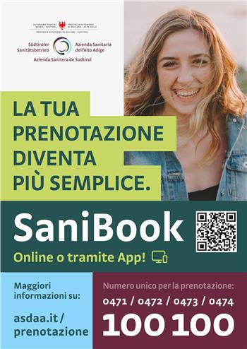 Seit Mai 2022 können auf sanibook.sabes.it auch Termine für eine Blutentnahme vorgemerkt werden. Via Web oder App gebucht werden können auch Termine für eine Grippe- oder Coronaschutzimpfung. Ebenso ein Termin für einen Covid-19-Schnelltest.
