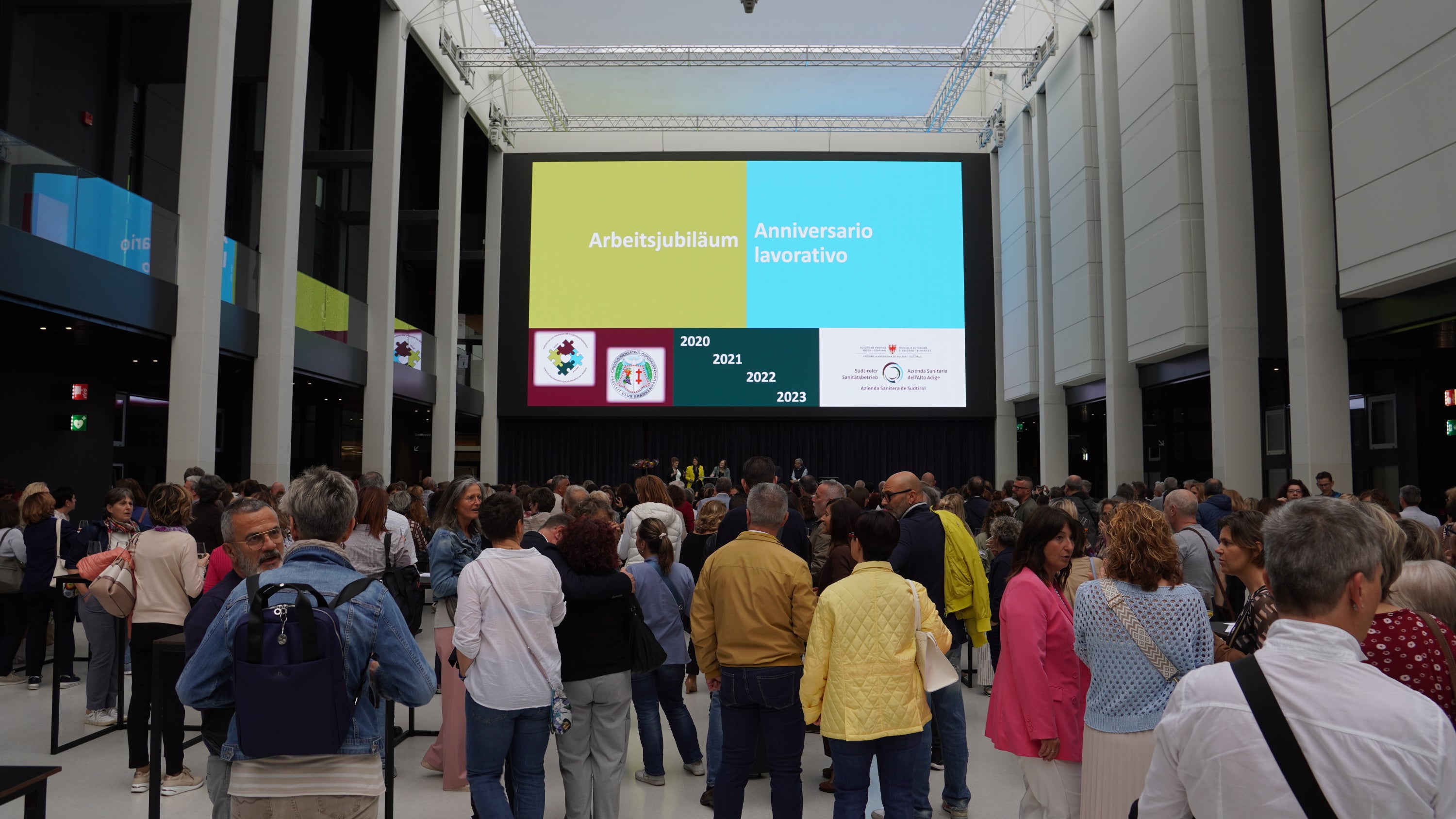 Ein besonderer Dank ergeht an die Messe für die Zusammenarbeit und dafür, dass sie uns das Foyer zur Verfügung gestellt haben, das den rund 500 Mitarbeitenden des Sanitätsbetriebes ausreichend Platz bot. Es war uns eine Ehre, dieses Event zusammen mit Gesundheitslandesrat Hubert Messner, der Direktorin des Gesundheitsbezirkes Bozen Dr.in Irene Pechlaner, der gesamten Direktion des Gesundheitsbezirkes und der Vertreterin des Krankenhaus-Freizeit-Clubs, Dr.in Lisa Giacosa, feiern zu können.