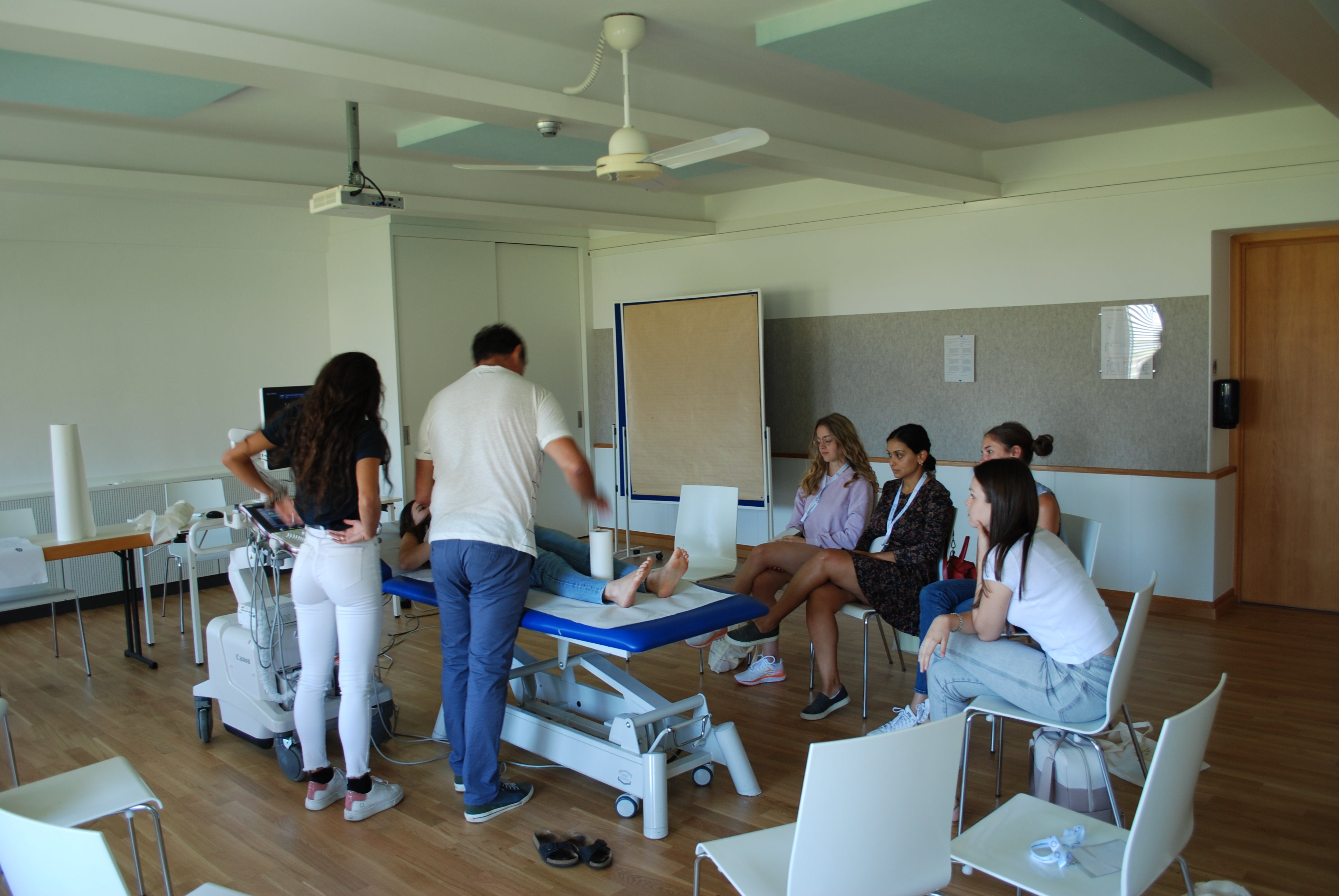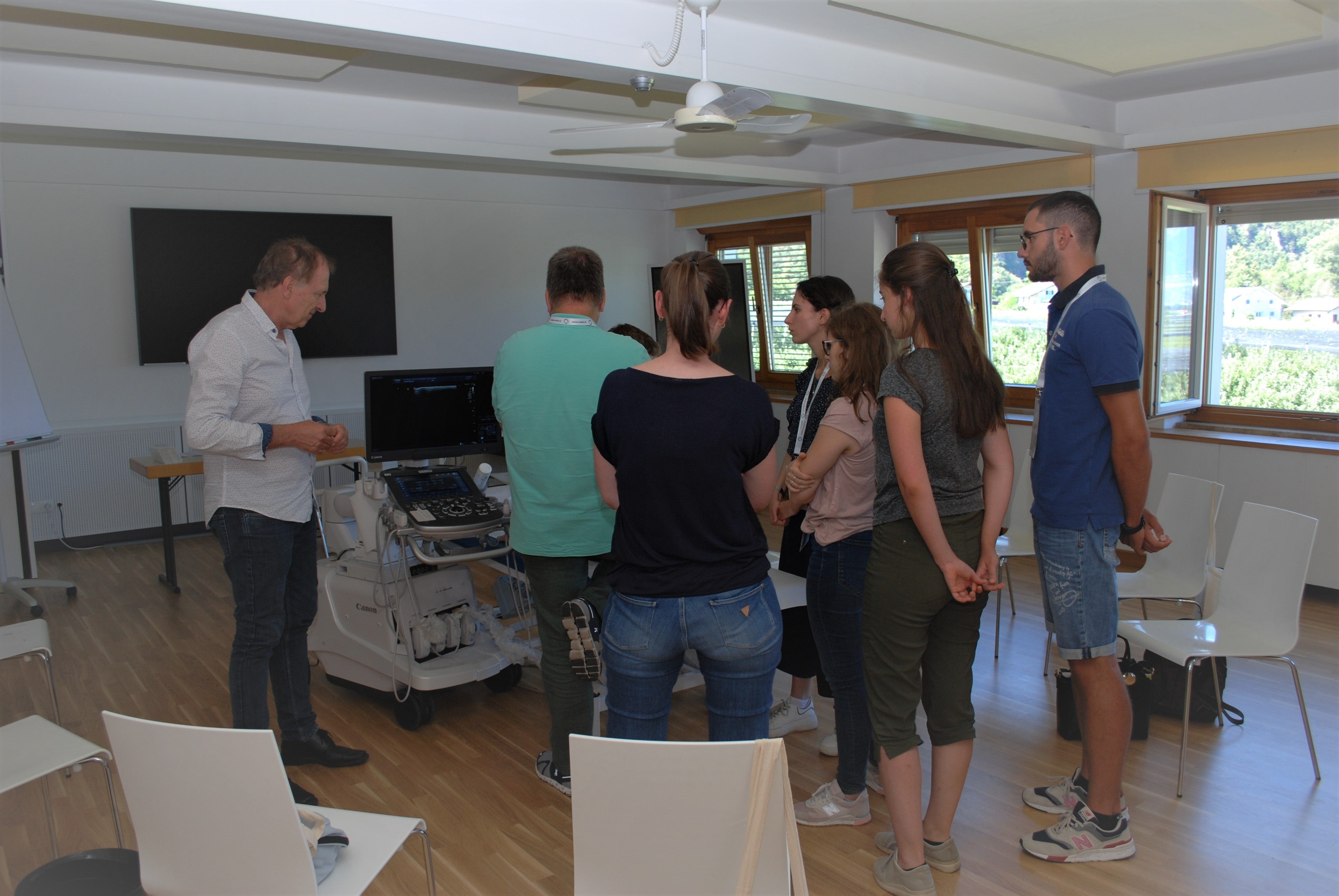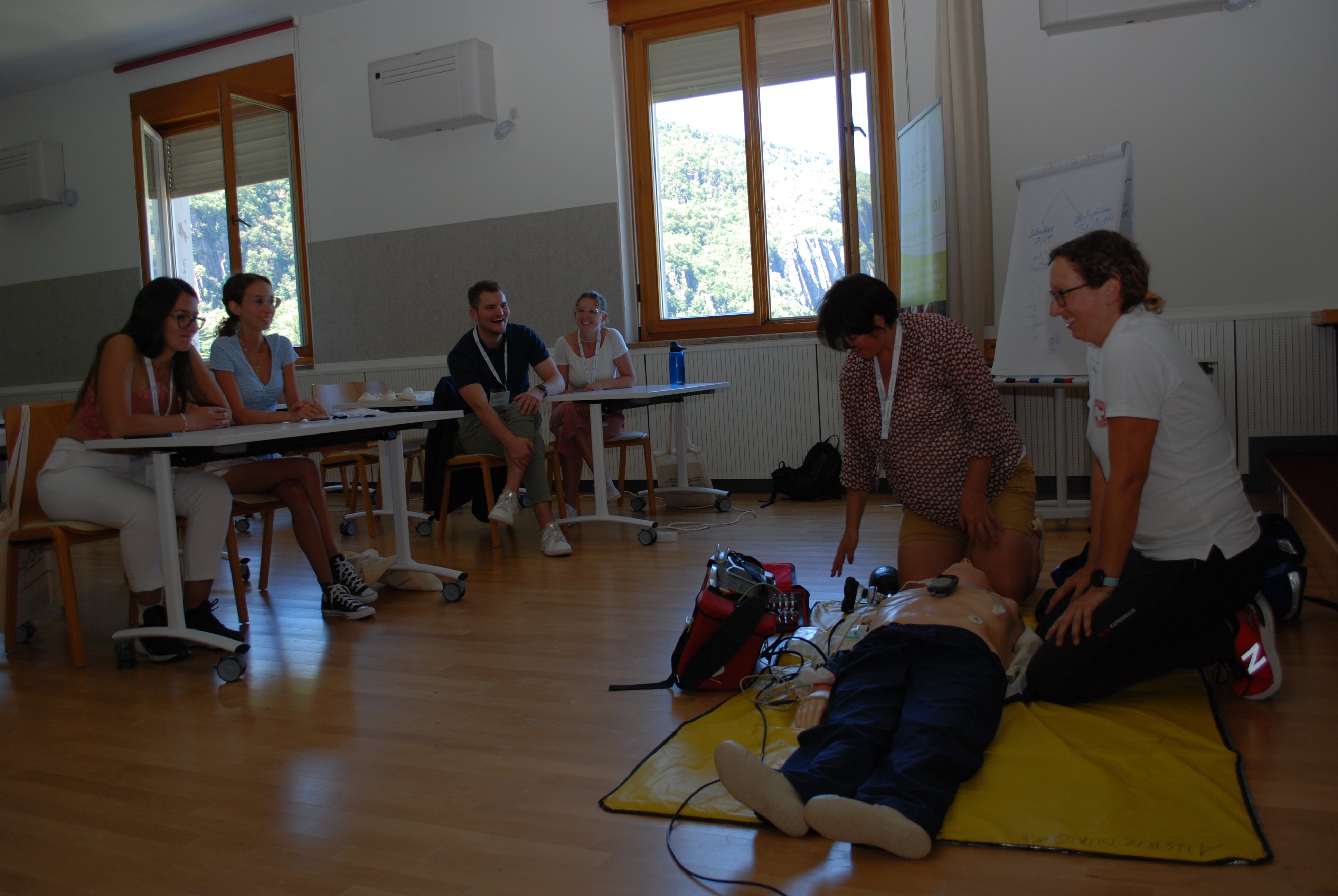 Neben dem theoretischen Teil wird bei der Summerschool des Südtiroler Sanitätsbetriebes einem umfassenden praktischen Teil viel Raum gegeben. In kleineren Gruppen wurden diesmal etwa klinische und sonographische Gelenksuntersuchung und Abdomen-Ultraschall geübt sowie ein Reanimationstraining erläutert. Unterrichtet und betreut werden die Medizinstudentinnen und Medizinstudenten von Primaren und Primarinnen, Fachärzten und Fachärztinnen des Südtiroler Sanitätsbetriebes sowie von Allgemeinmedizinerinnen und Allgemeinmedizinern, die in Südtirol tätig sind.