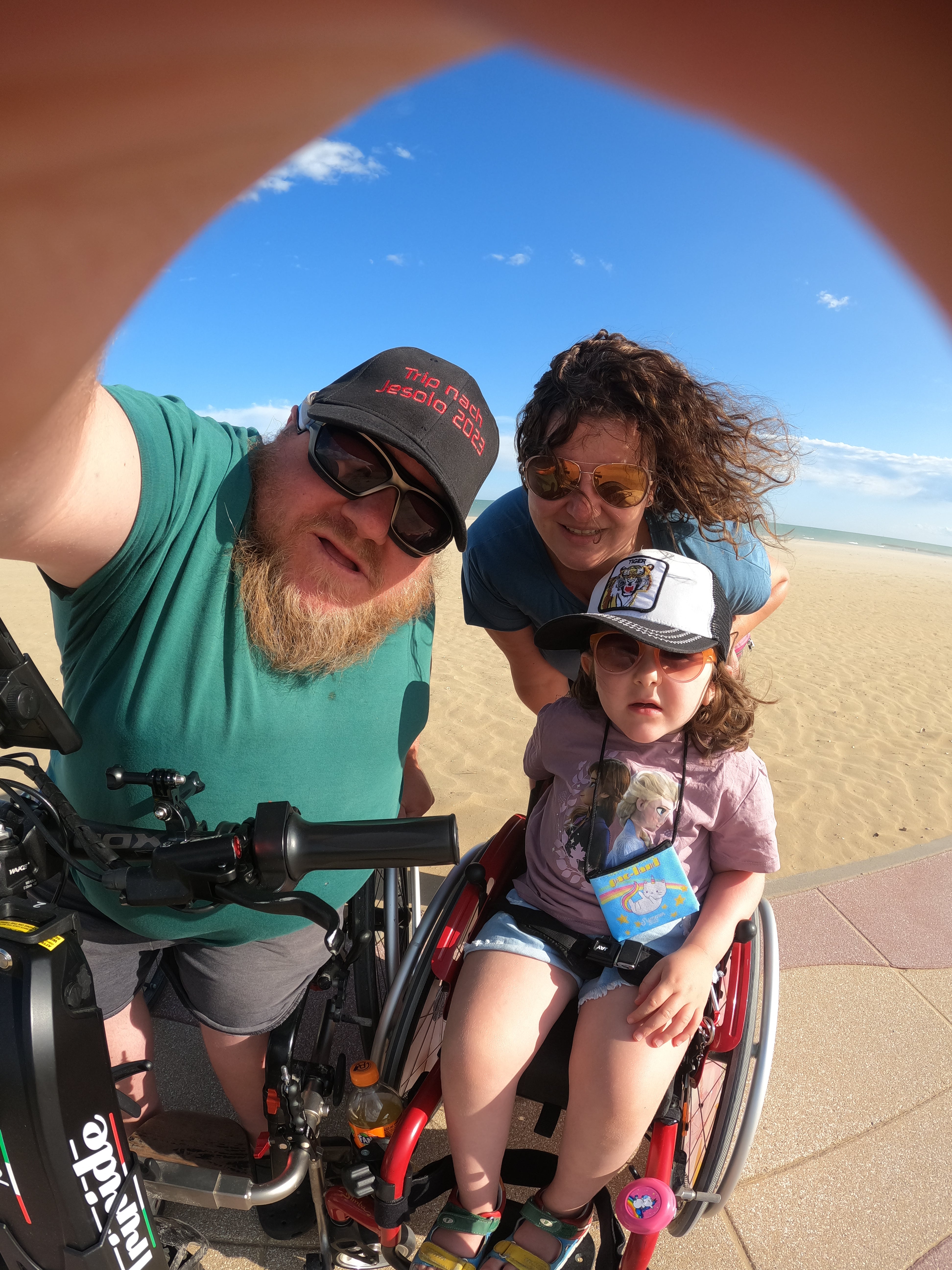Lebensgefährtin Franziska, selbst als Physiotherapeutin tätig, erklärt, dass Xena eine seltene dominante Form der Krankheit hat. Doch zu viel schonen wollen die Eltern das aufgeweckte Mädchen nicht: „Auch wenn es mich manchmal traurig macht, dass sie nicht alles tun kann, so versuchen wir doch, ihr so viel wie möglich zu erlauben, damit sie mit den anderen Kindern mithalten kann. Ein schmaler Grat, denn wir müssen natürlich trotzdem etwas vorsichtig sein“, so Franziska. So wurde für Xena ein eigenes Tri-Ride angekauft, damit sie mobiler ist, damit kann sie mit dem Papi um die Wette flitzen. Petz selbst ist mittlerweile ein erfahrener alter Hase auf dem Bike, heuer im Sommer führte ihn eine Tri-Ride-Reise sogar bis nach Jesolo. Die Förderungen für derartige Hilfsmittel seien super, so Petz, aber die Bürokratie, bis es so weit sei, sei manchmal belastend. „Dazu kommt, dass es keine zentrale Anlaufstelle gibt, wenn ich jetzt z.B. durch unsere zwei Rollstühle ein neues Auto brauche, heißt es von Pontius zu Pilatus pilgern…“